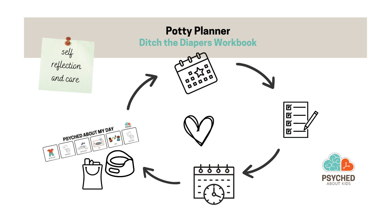 As an extra support to you and your child’s success, we have created our PAK Potty Planner to accompany our Ditch the Diapers book. It will help you to create your plan, self-reflect on your approach, share with your support network, stick with it, and adjust as needed. We want to support you in making the potty training process as smooth as possible, and fun!